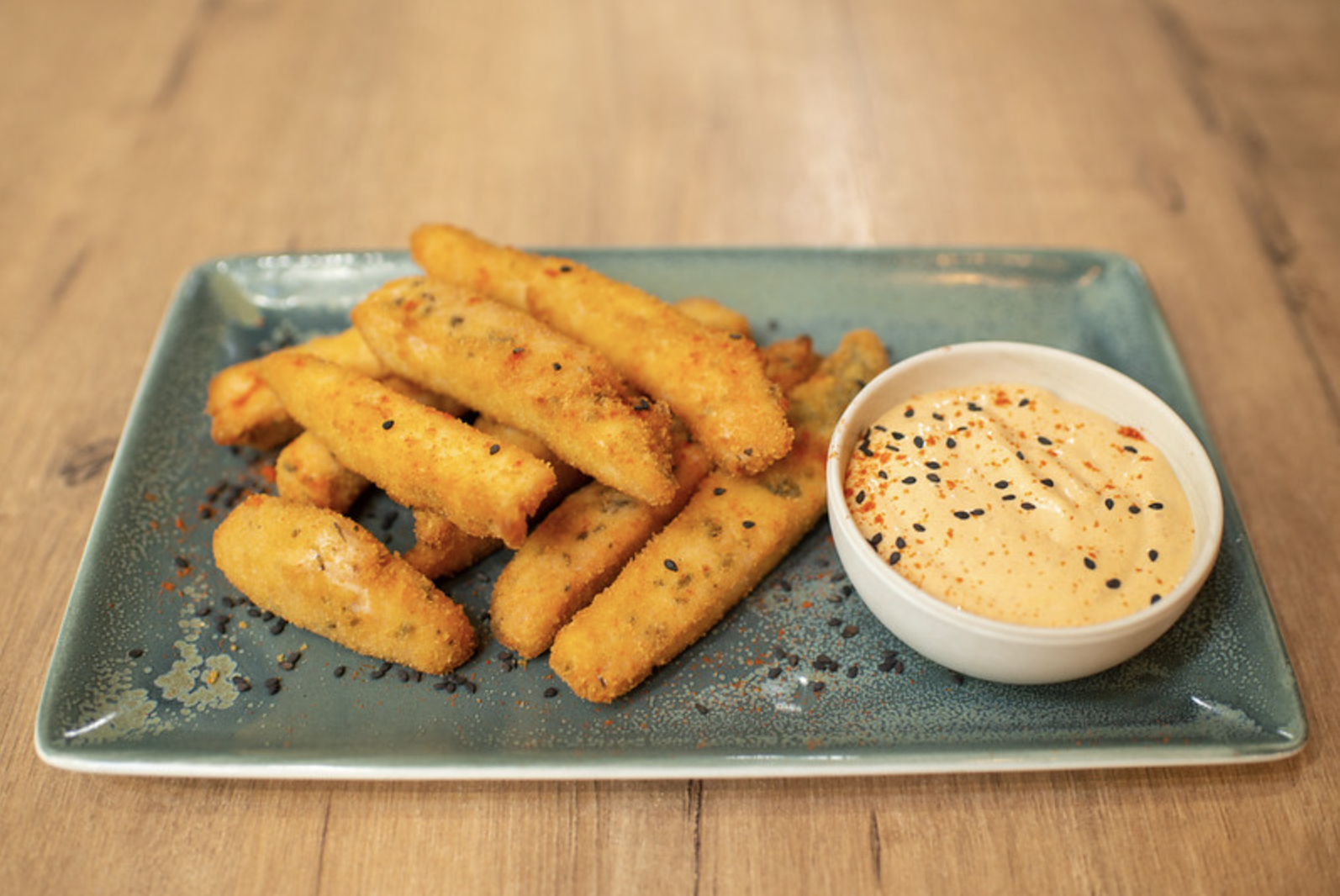 Marinamos las alitas en coco, curry y cítricos antes de asarlas y freírlas. Después las bañamos en salsa de caramelo de guindilla. Si pasas la prueba de las alitas en la primera cita es que es amor del bueno (8 uds).